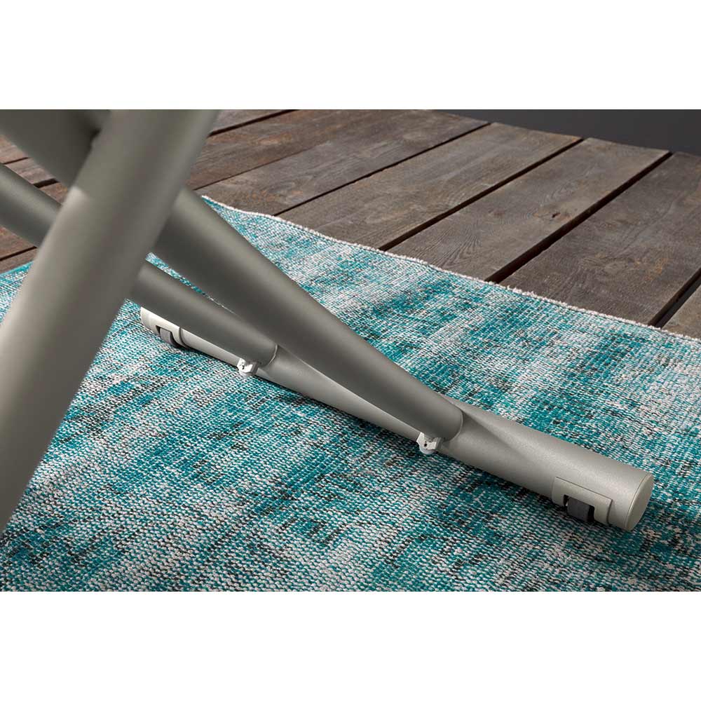 præget ildfugtlakeret metal komplet med tværgående optrækkelige hjul. Karakteriseret af