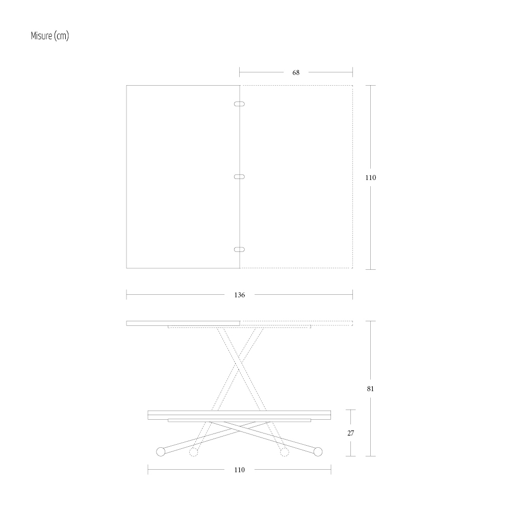 Transformerbart sofabord i melamintræ og metal Fremstillet i Italien.