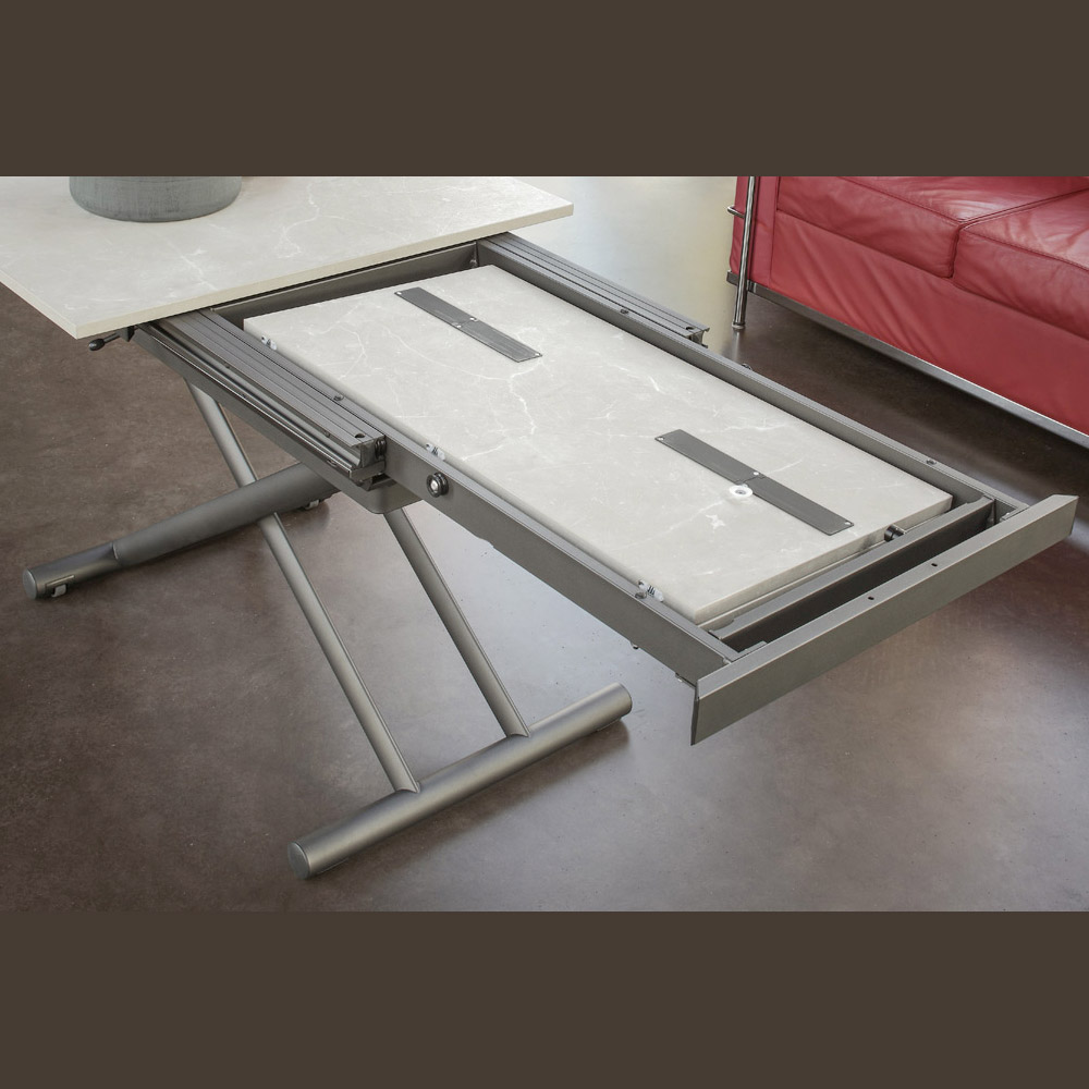 Men den virkelige magi sker, når den forvandler sig. Med en enkel handling løfter og udvider dette alsidige stykke sig og forvandles til et rummeligt og indbydende spisebord. Mekanismen er flydende og intuitiv, designet til at tilbyde maksimal funktionalitet uden at ofre stil.
