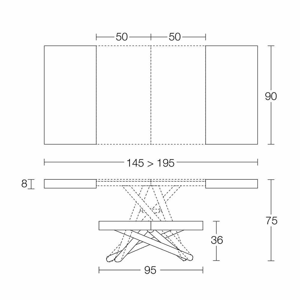 Moderne design konvertibelt sofabord med plade i melamintræ og metalbund Made in Italy.