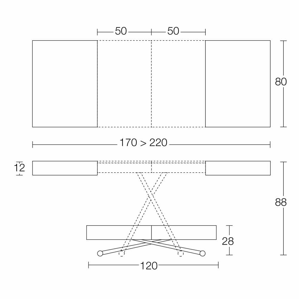Moderne sofabord, der kan laves om til spisebord med træplade og metalbund Made in Italy.