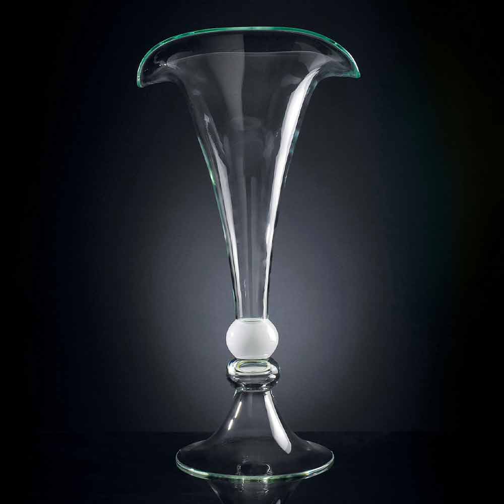 Indendørs dekorativ vase i hvidt og gennemsigtigt glas Fremstillet i Italien.