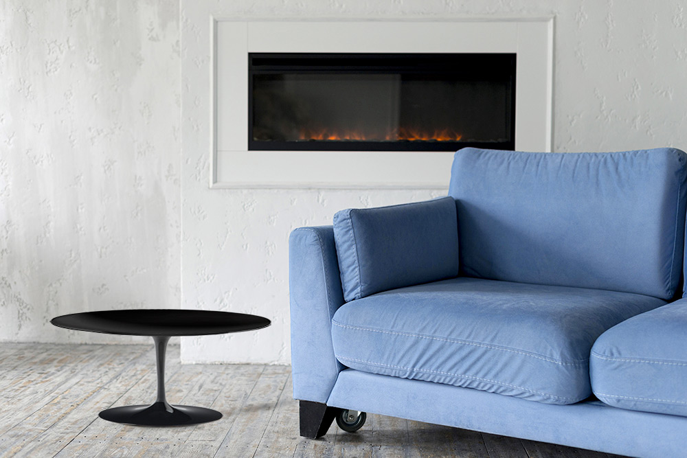 Sofabord helt fremstillet i Italien med oval plade i sort flydende laminat og fod i sort poleret aluminium . Materialerne brugt til byggeriet giver kvalitet og holdbarhed til dette fantastiske ovale sofabord. Dette er et designelement, der er velegnet til at indgå i enhver form for møbler og miljø i hjemmet, da dens ovale form og enkle, raffinerede linjer gør den perfekt til at indrette med stil og smag. Det originale og karakteristiske gør rummet unikt og velegnet til enhver lejlighed og begivenhed.
