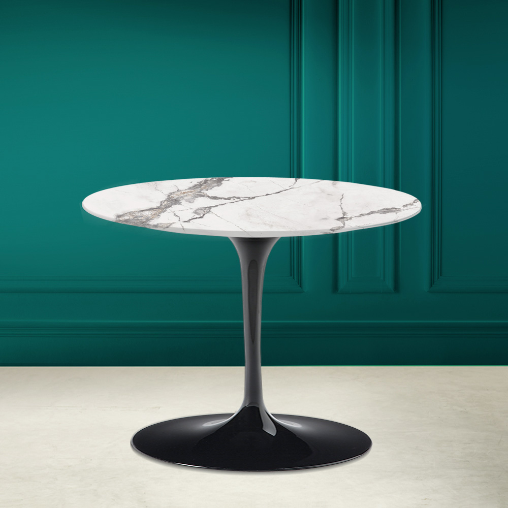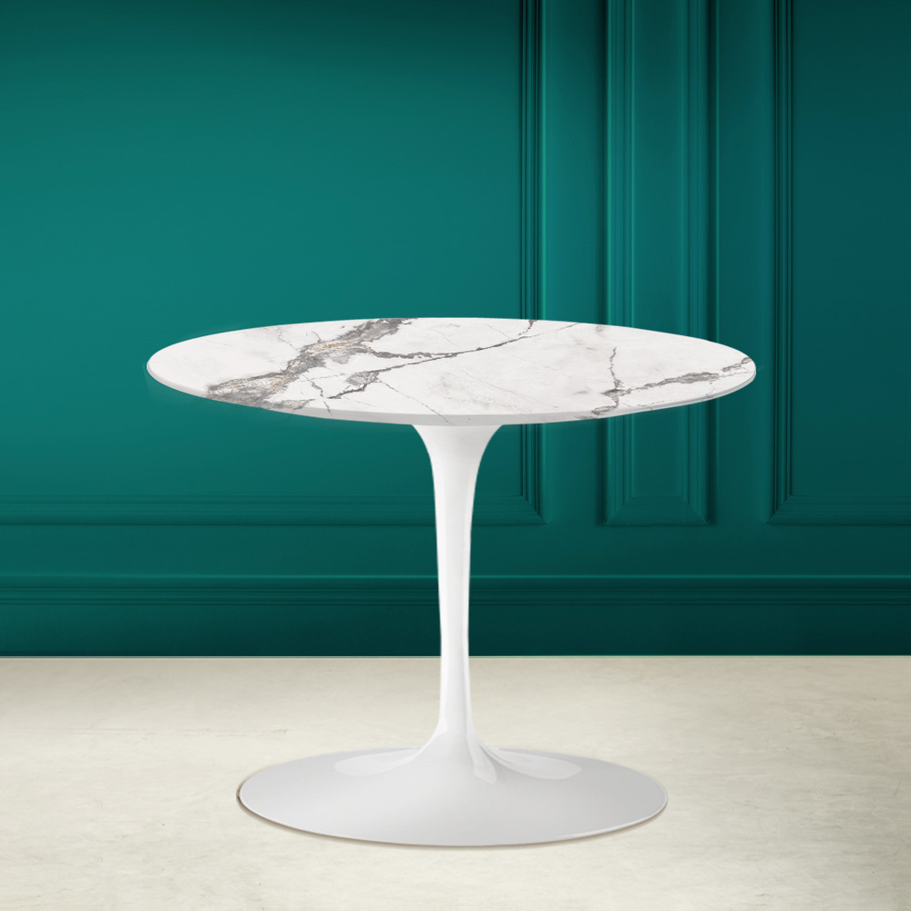 Rundt sofabord med usynlig udvalgt keramisk plade og poleret aluminiumsbund Made in Italy