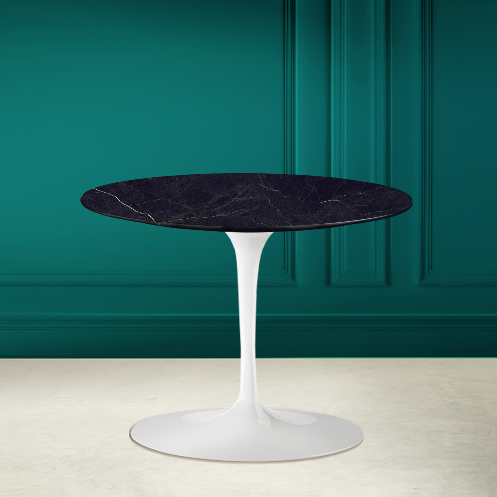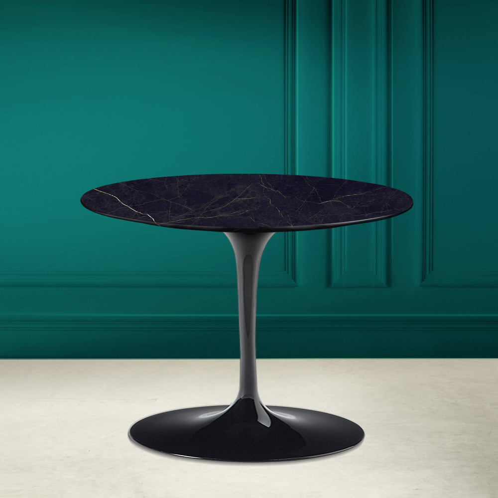 Rundt sofabord med noir laurent keramikplade og poleret aluminiumsbund Made in Italy