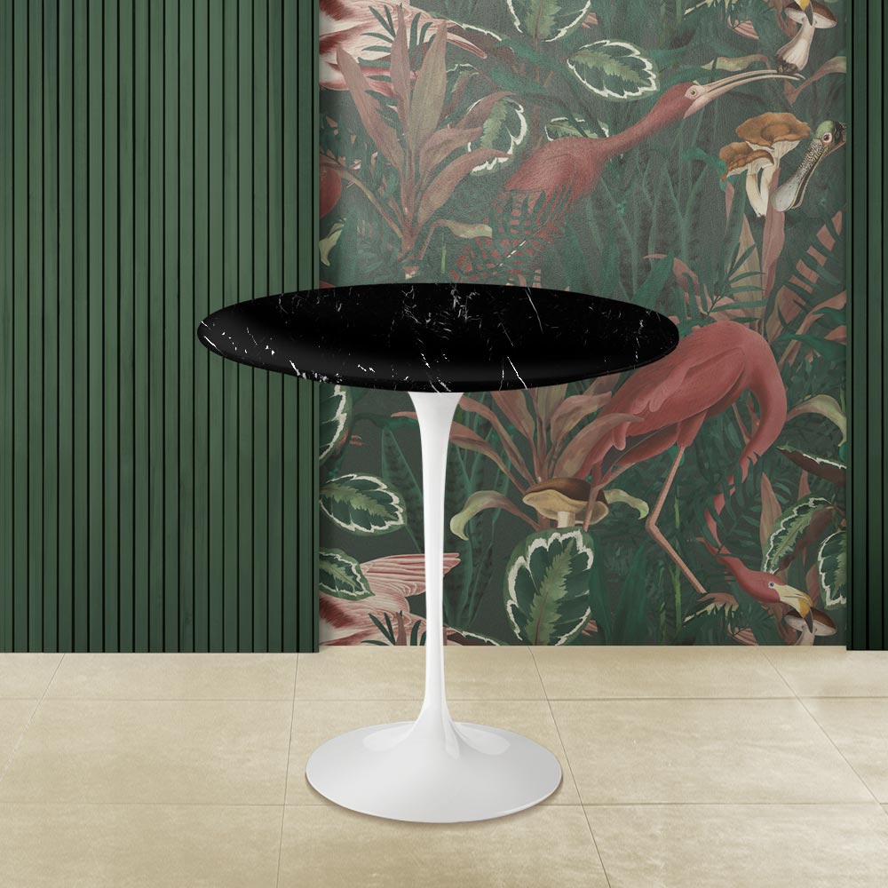fremstillet i Italien . Sort Marquinia-marmor er alment kendt som en af de mest værdifulde marmorkugler og er det, der kendetegner dette indretningselement. Foreningen mellem sort marquinia-marmor og poleret aluminium skaber et produkt med en