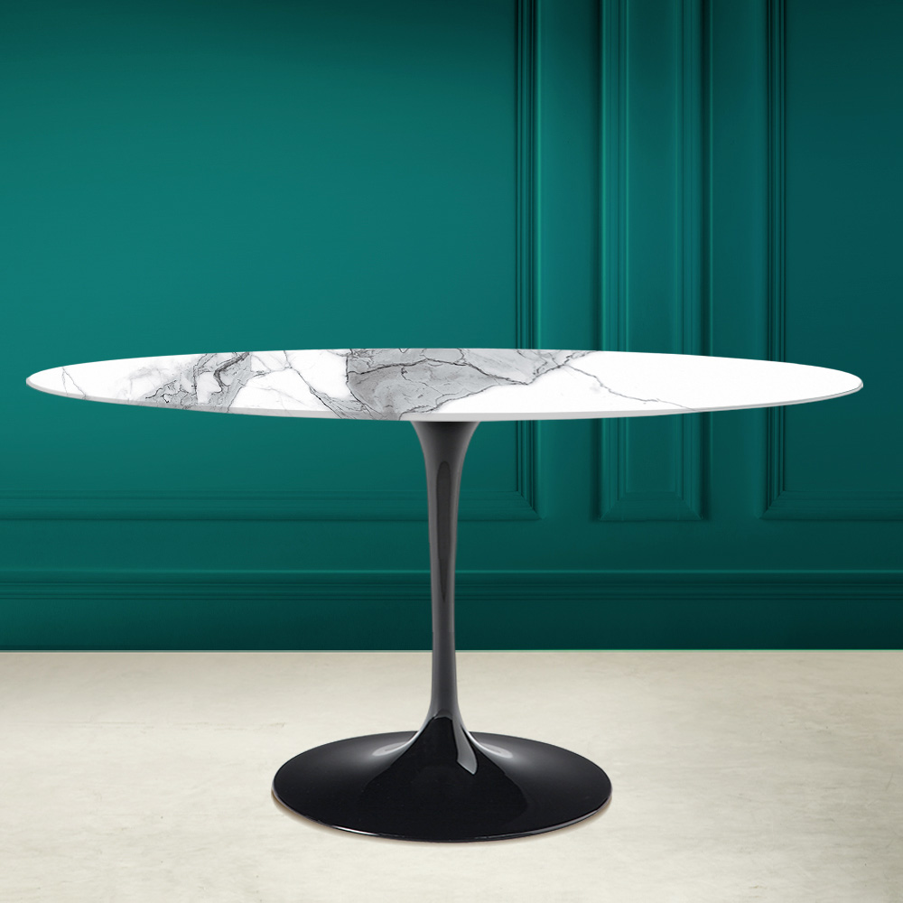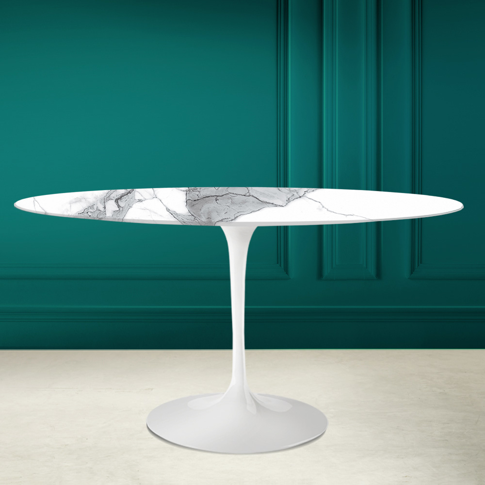 fremstillet i Italien. Dette bord har to egenskaber, der gør det unikt i sin art: den ovale form og statuario altissimo-keramikken.