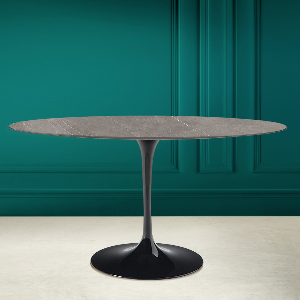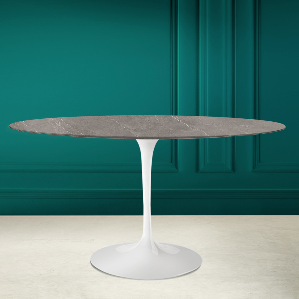 Spisebord med oval bordplade i grå stenkeramik Made in Italy