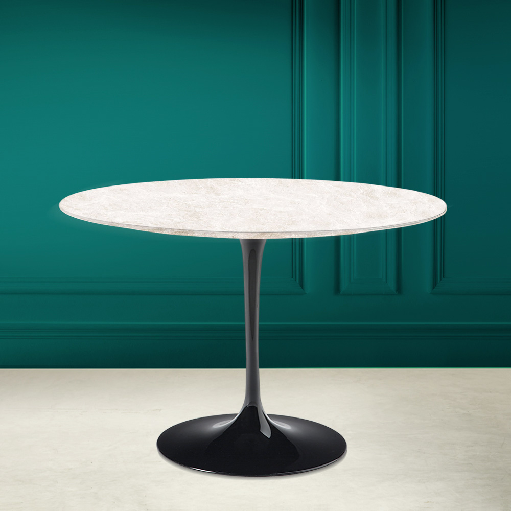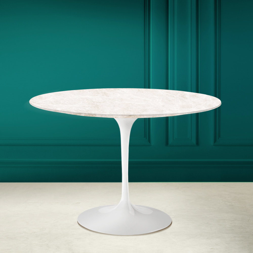 Spisebord med rund bordplade i diamantcreme-keramik fremstillet i Italien