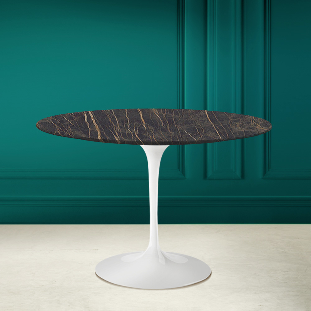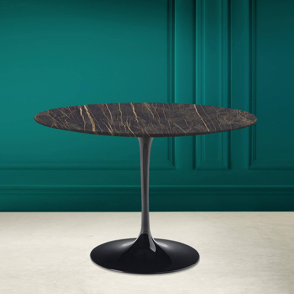 Spisebord med rund bordplade i noir desire-keramik fremstillet i Italien