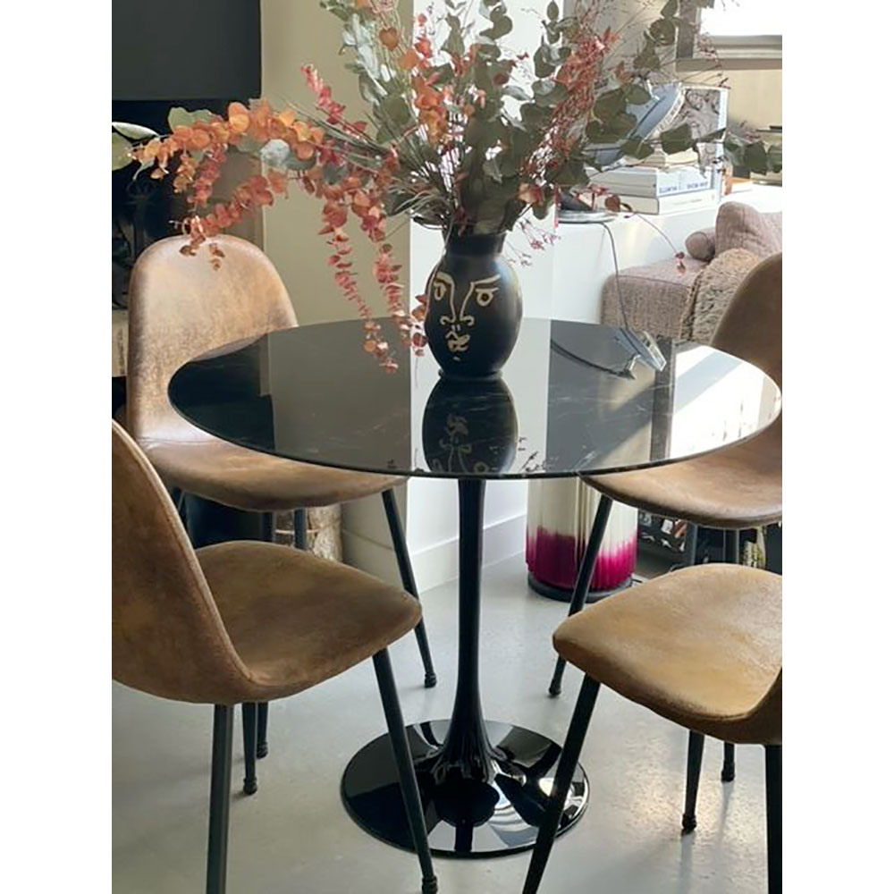 Spisebord med rund bordplade i sort marquinia-marmor og understel i poleret aluminium fremstillet i Italien