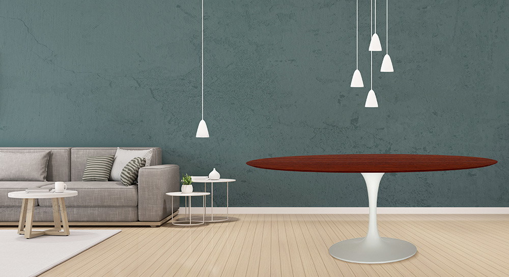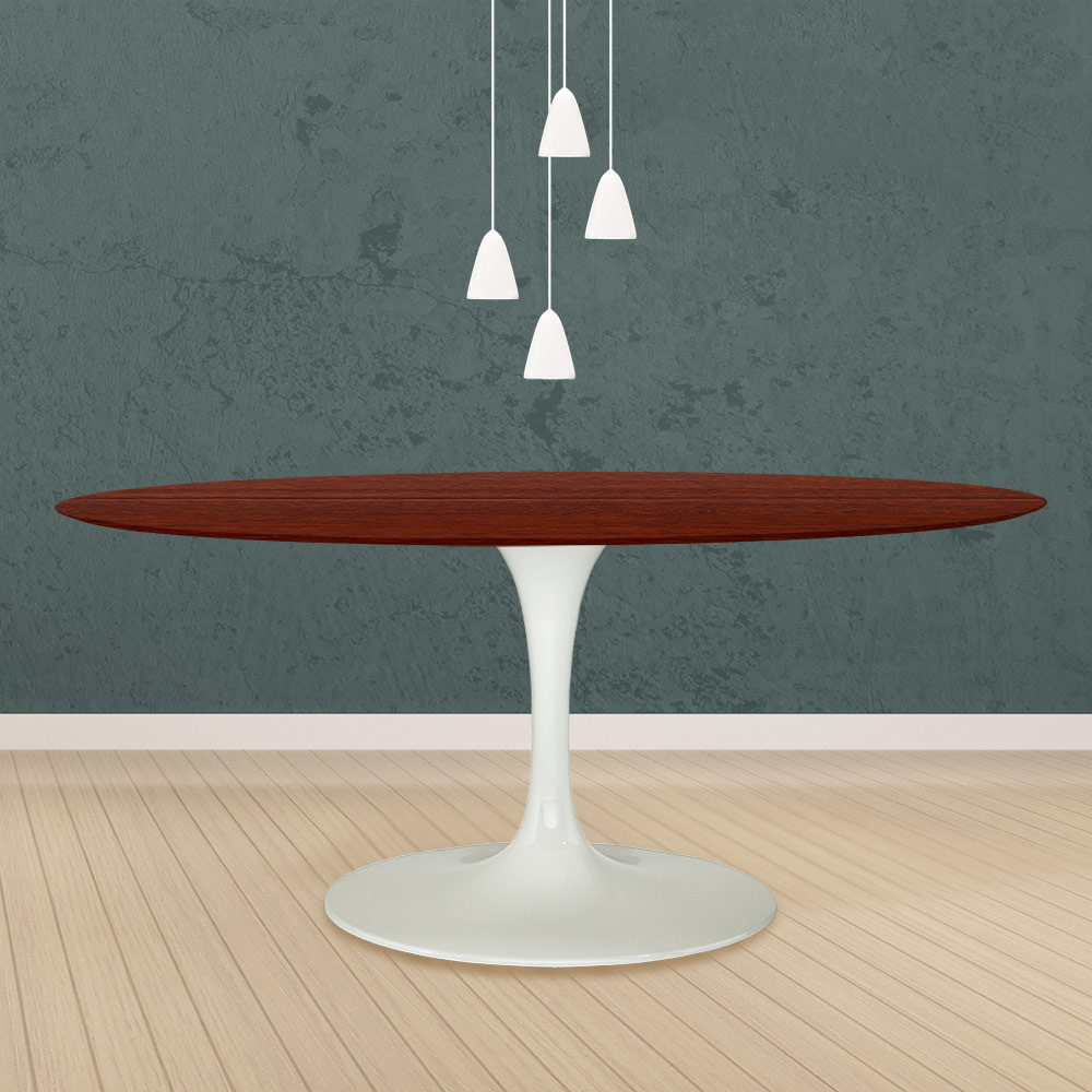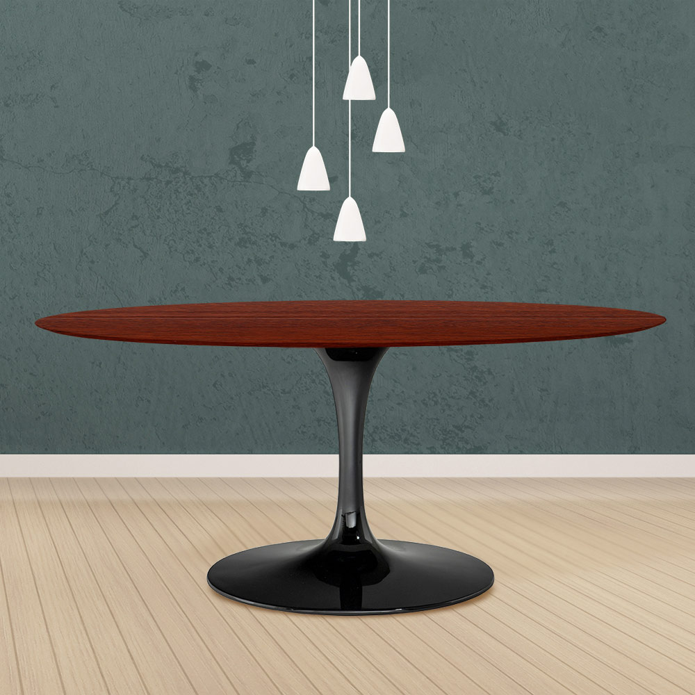 ovale form og den palisanderbejdsede egetræsplade giver dette bord et