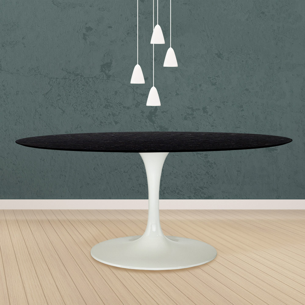 Ovalt spisebord i sortbejdset eg og stel i poleret aluminium fremstillet i Italien