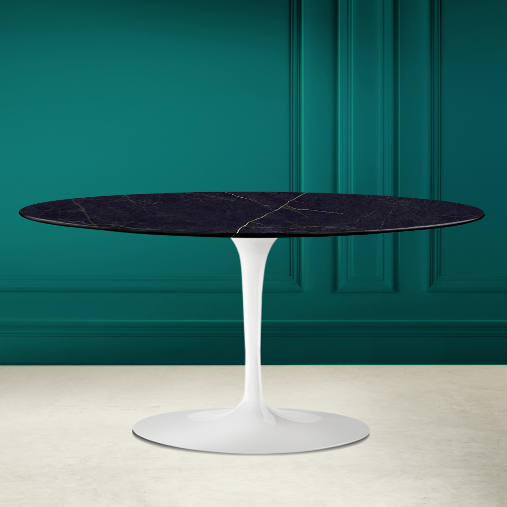 Sofabord med oval plade i Noir Laurent keramik og fod i poleret aluminium Made in Italy