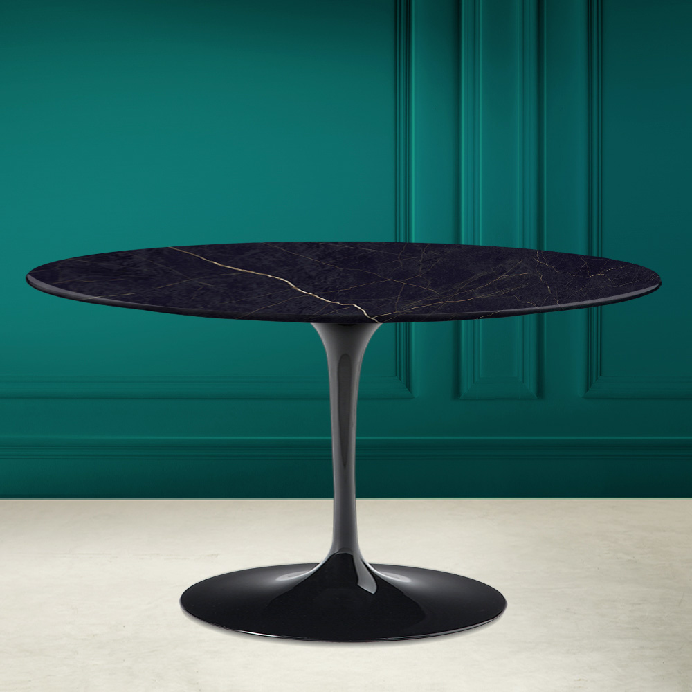 Ovalt sofabord med noir laurent keramikplade og poleret aluminiumsbund Made in Italy