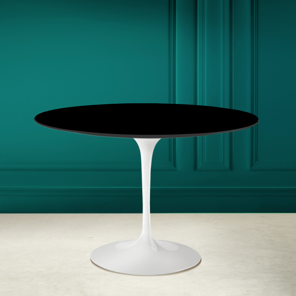 Spisebord med rund bordplade i absolut sort keramik fremstillet i Italien