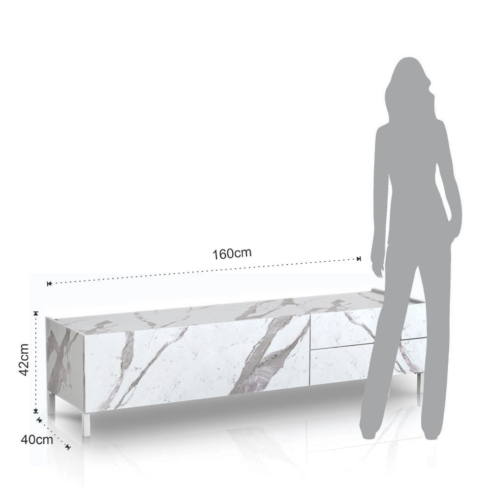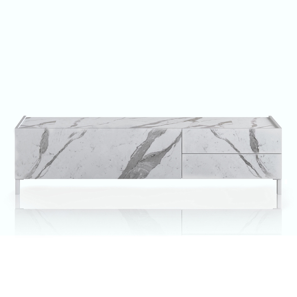 tykt fuldstændigt dækket af melamin med mat Calacatta hvid marmor finish , med