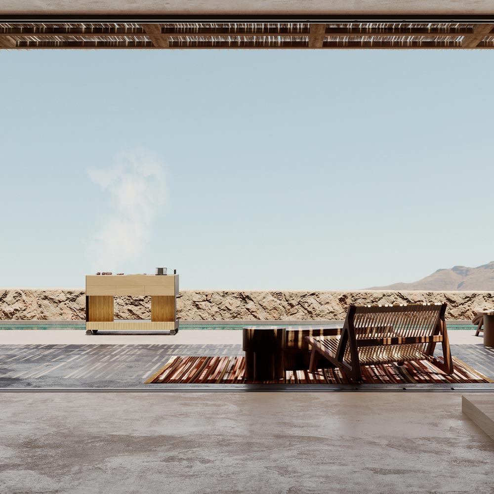 Dette udendørskøkken repræsenterer den perfekte blanding af funktionalitet og moderne design, ideelt til at gøre hvert øjeblik udendørs til en unik oplevelse. Stellet i pulverlakeret aluminium giver robusthed og vejrbestandighed, mens indsatserne i massivt teak af høj kvalitet, der er behandlet med Rubio Monocoat Hybrid Wood Protector, tilføjer et strejf af naturlig elegance og visuel varme.