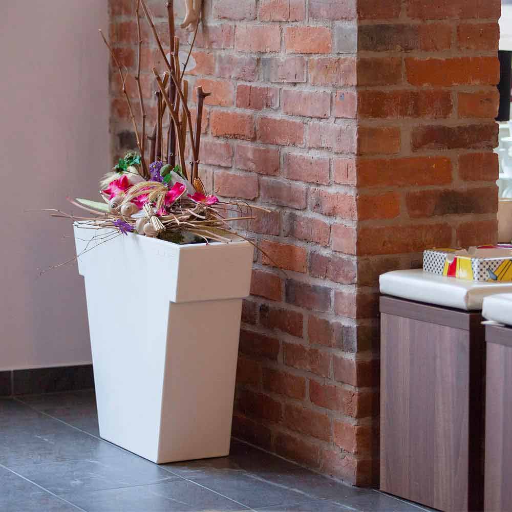 Vasen er et møbel, der egner sig til både udendørs og indendørs omgivelser takket være dets meget enkle og rene, fremstillede i italiensk design. Den præsenteres som en minimalistisk nyfortolkning af den klassiske blomstervase, med samme form, men ikke samme tykkelse, og foreslår et legende og stiliseret billede. Særlige og perfekte detaljer til at berige miljøet og give et strejf af originalitet, der går ud af de traditionelle ordninger.