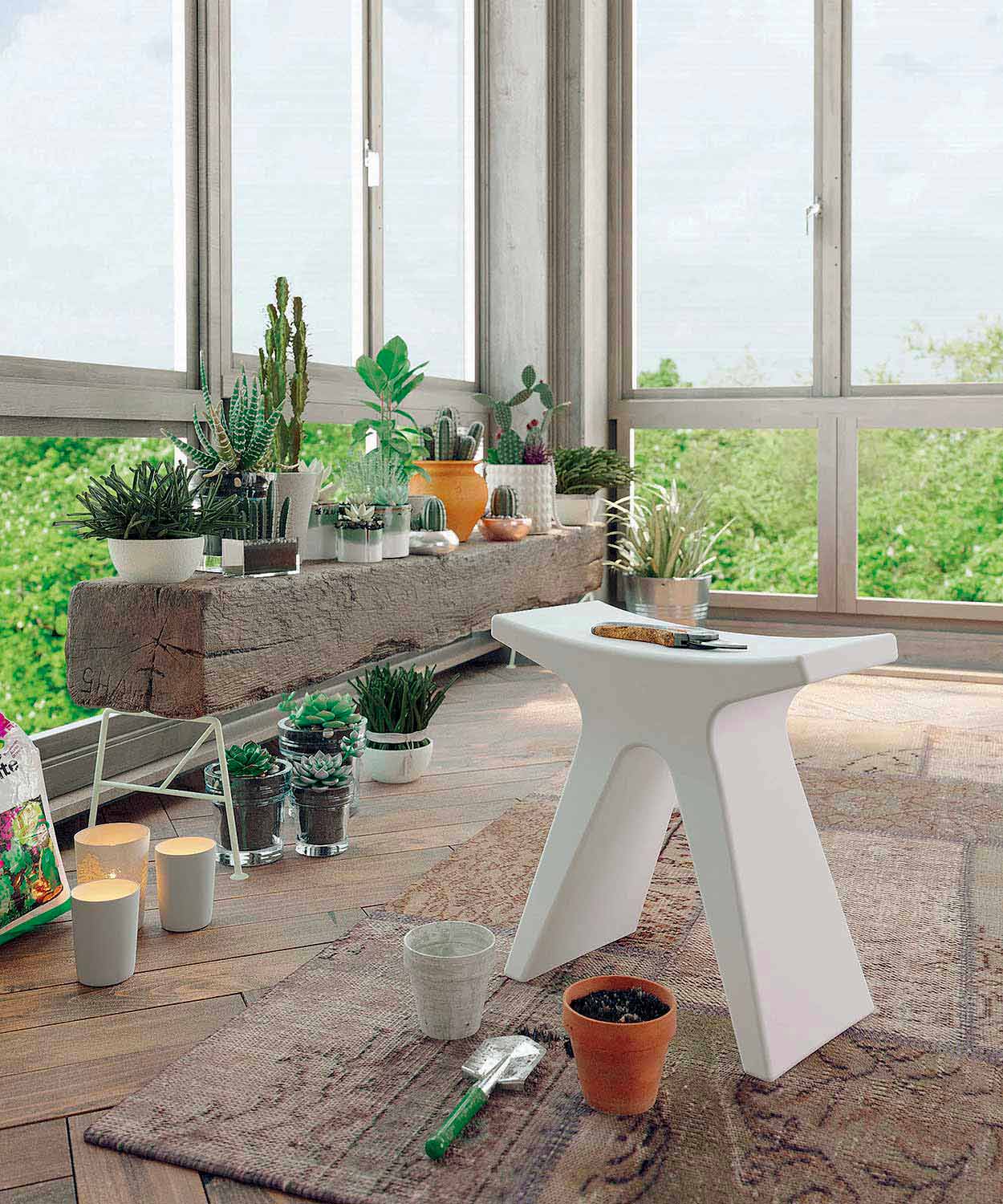 Prue er en sjov og funktionel udendørs lav afføring, der er kendetegnet ved et unikt og minimalt design, men samtidig også elegant og stilfuld, der udfører ikke kun en praktisk, men også æstetisk funktion i alle miljøer, indenlandske og offentlige.