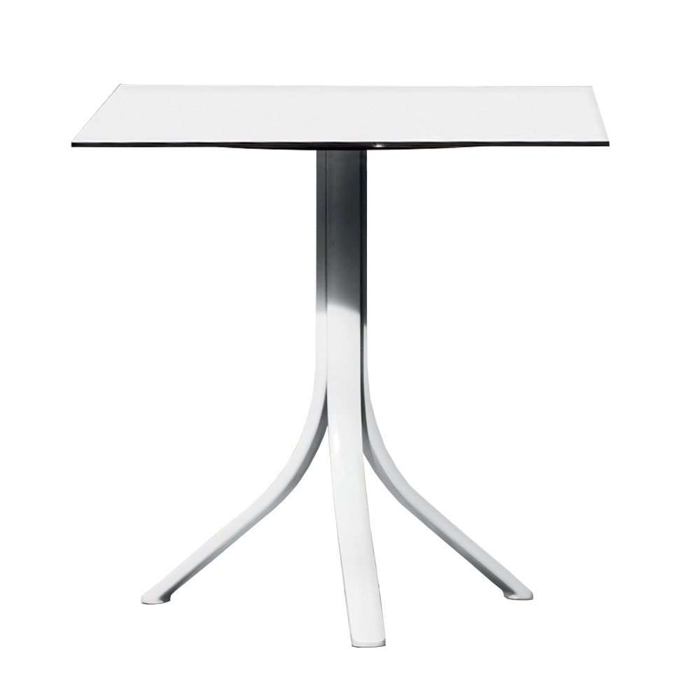 Firkantet udendørs barbord med liggende design i aluminium og hpl i 2 finish, høj kvalitet fremstillet i Italien.