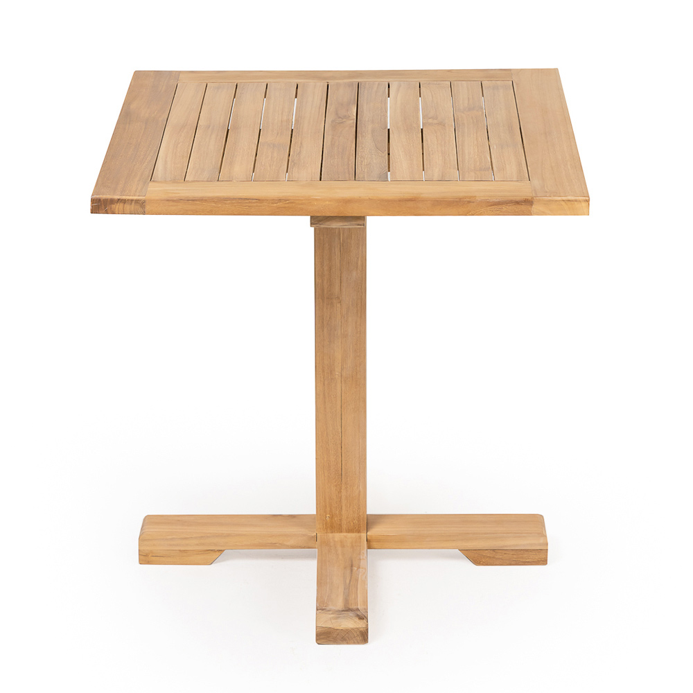 Havebord med centralt ben i teaktræ i forskellige størrelser.