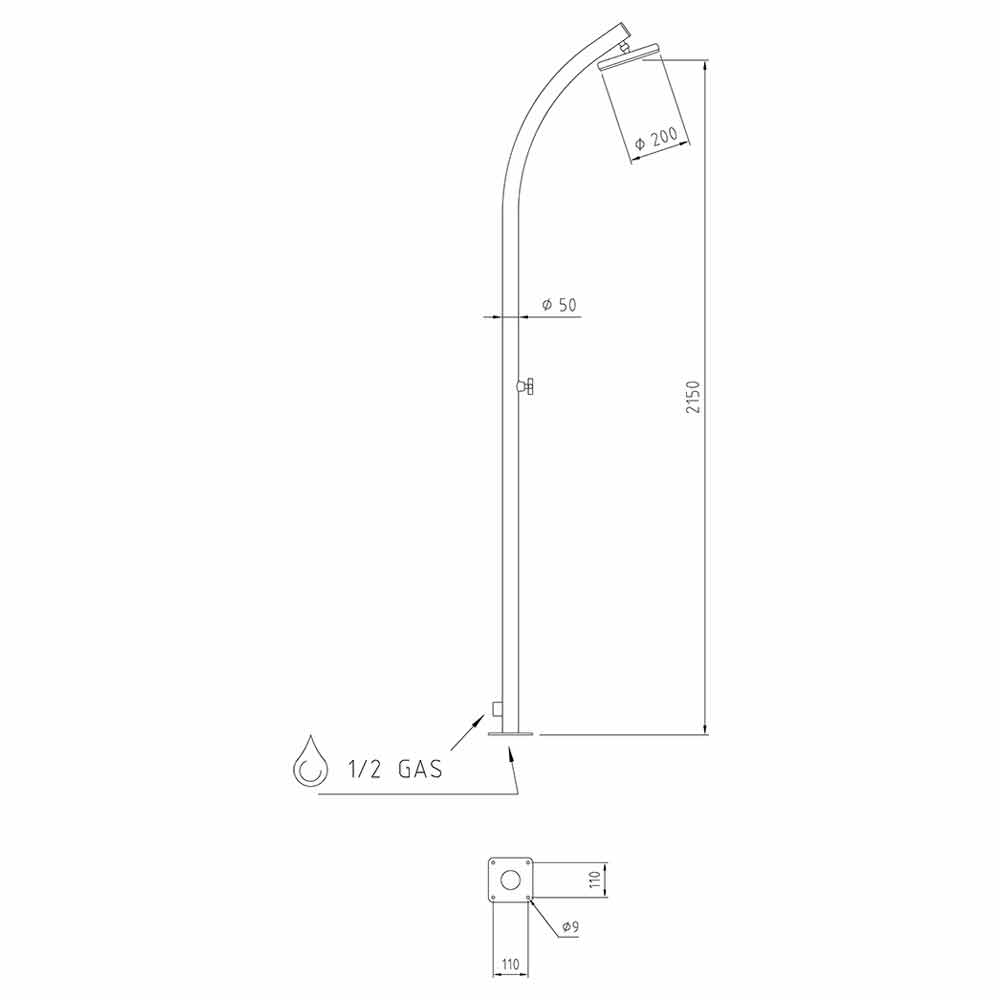 Udendørs bruser kun koldt vand med skruearmatur i rustfrit stål. Fremstillet i Italien.