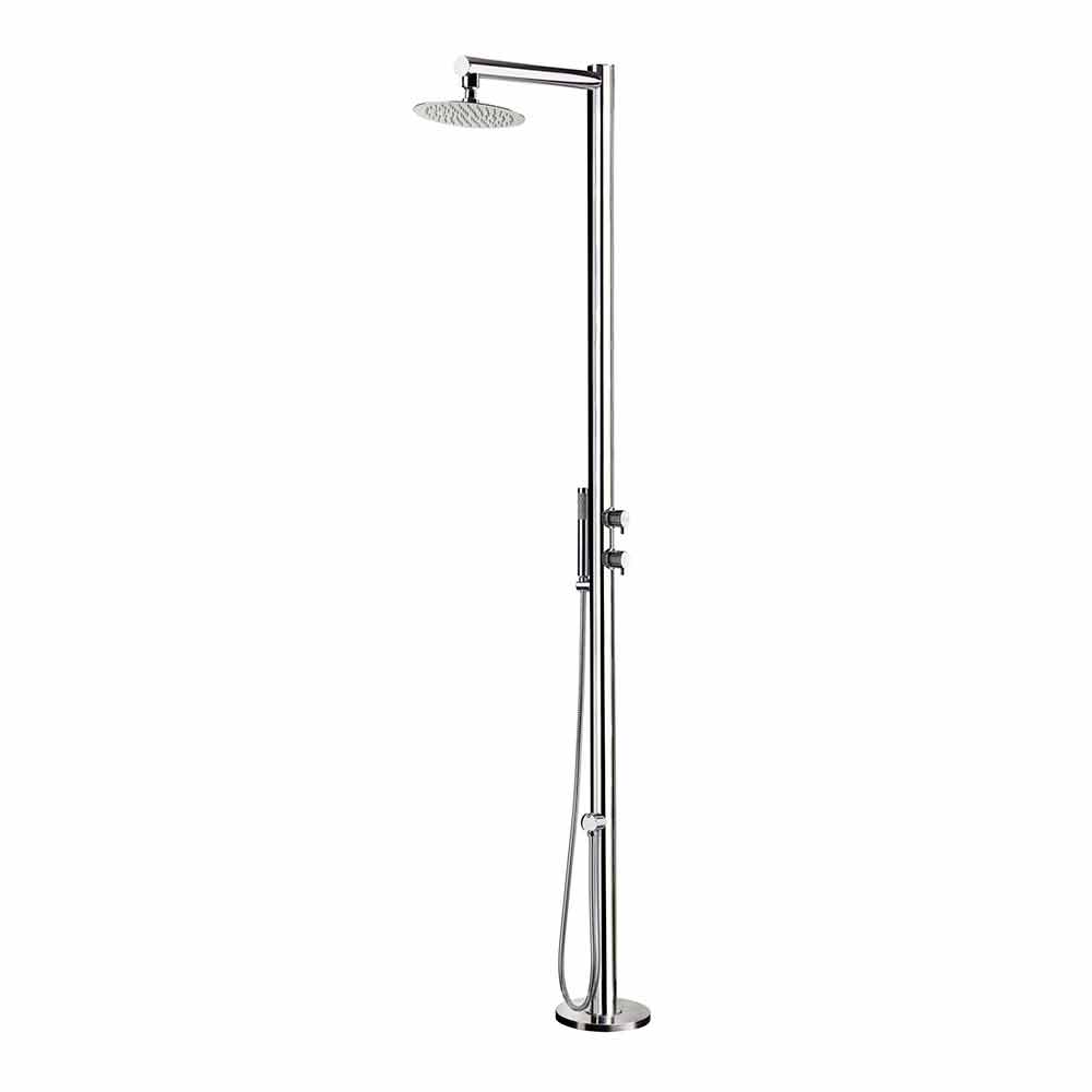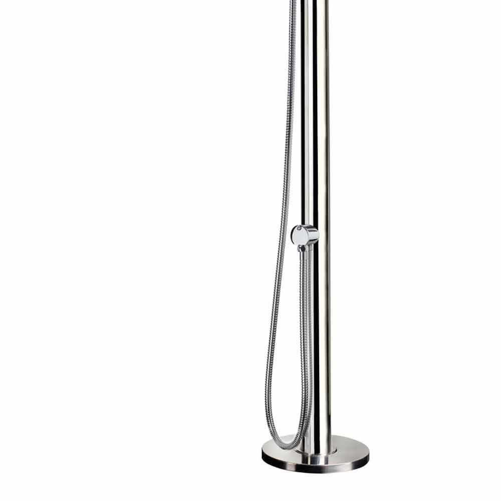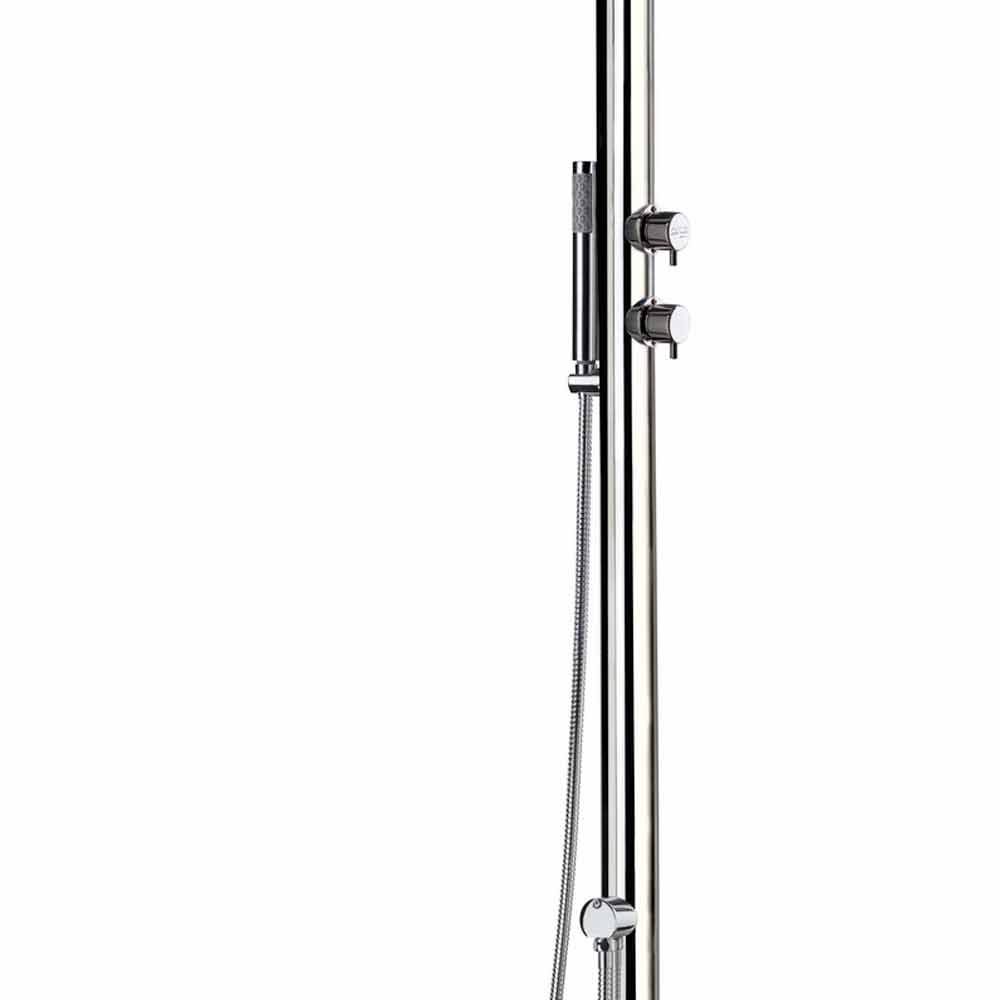 Udendørsbruser varmt/koldt vand i rustfrit stål med poleret finish og håndbruser. Fremstillet i Italien.
