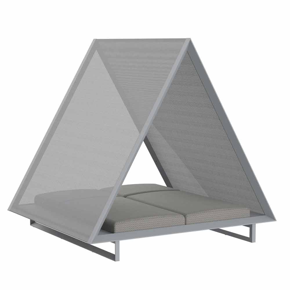 Dobbeltseng til udendørs med luksuriøst design, aluminiums- og stofstruktur.