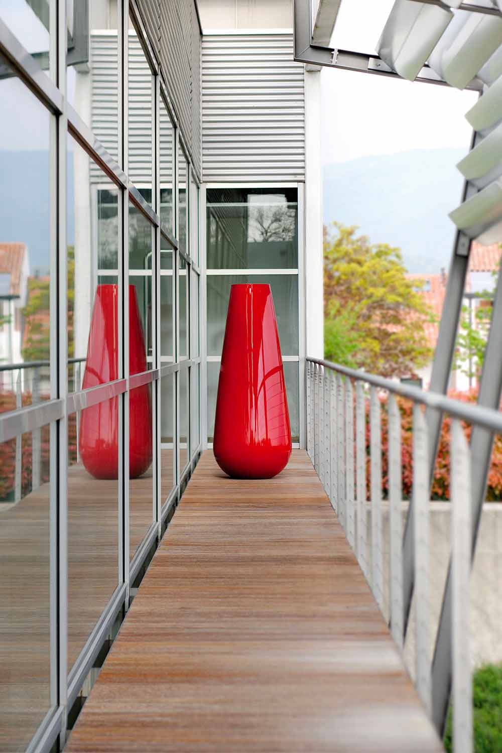 polyethylen og fås i den uigennemsigtige version, der er kendetegnet ved fremragende modstandsdygtighed over for stød og varme, i den modstandsdygtige og lyse lakeret version, der giver dig mulighed for at skabe legespil og refleksioner, der bliver hovedpersoner i miljøet eller endelig i den metalliske version. Ideel til mellemstore planter med lodret udvikling.