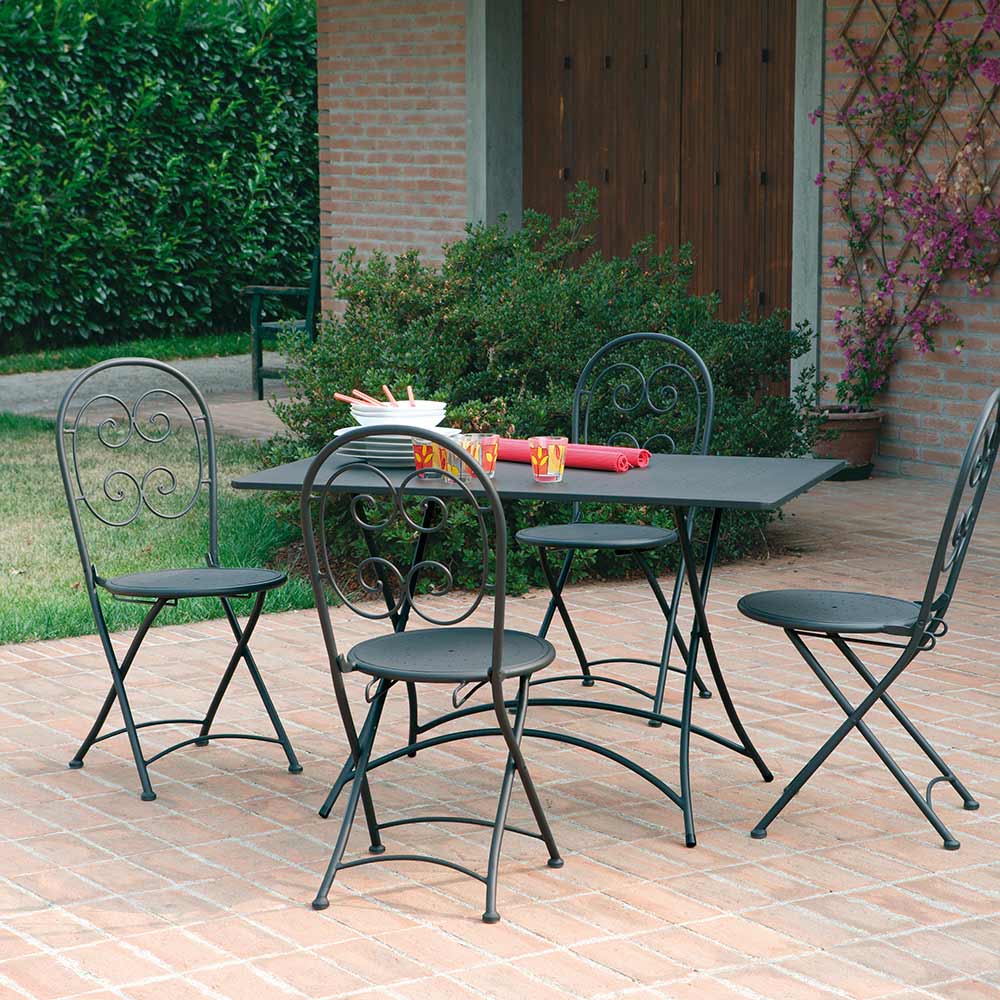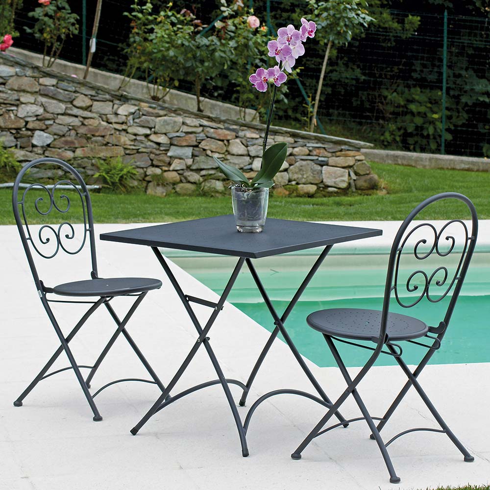 Havestole lavet af antracitgrå jern med antirustbehandling , ideelle til at indrette dine udendørsrum med et strejf af unik stil og en stærk moderne personlighed . Formernes enkelhed og den sobre farvenuance gør den særlig alsidig takket være dens lille størrelse, lethed og håndterbarhed. Det, der bliver født, er derfor et unikt produkt i sin væsentlighed , der er i stand til at forbedre det omgivende miljø ved at bringe et eksklusivt og fascinerende præg med sig .