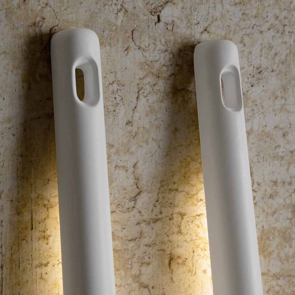 Lampen er lavet af uigennemsigtig hvid technopolymer til et helt italiensk design, der gennem ukonventionel eksperimentering og kontinuerlig forskning mellem tradition og modernitet er i stand til at forbløffe, tør og begejstre, så du kan udtrykke dine følelser gennem en original og personlig brug. dekorativt lys.