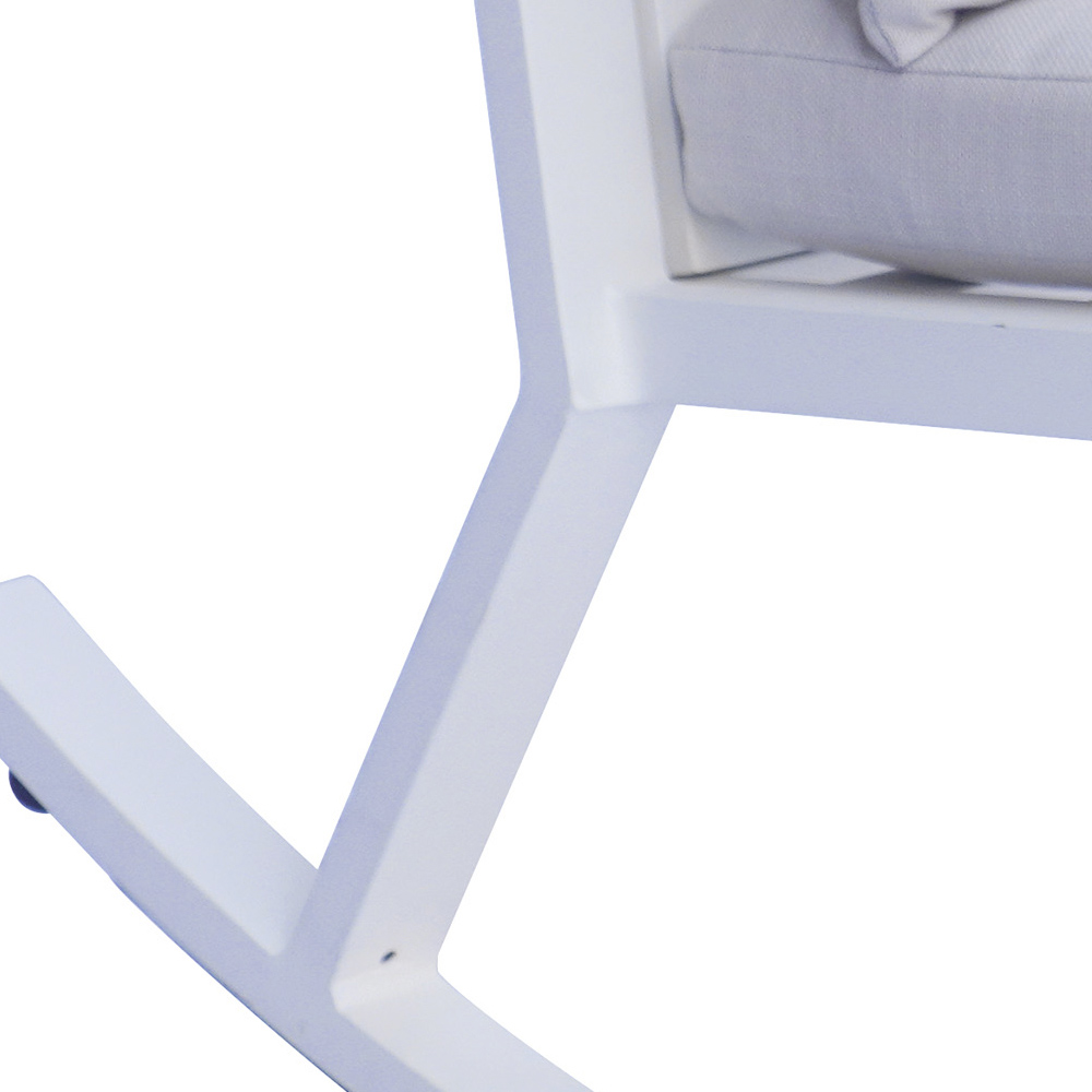 Bring et strejf af moderne elegance og sofistikeret afslapning til din have med denne moderne gyngestol. Designet til at blande stil og komfort, denne stol er udformet med en robust aluminiumsramme , der sikrer holdbarhed og nem vedligeholdelse. Det minimalistiske design er parret med tykke, bløde puder, der giver overlegen komfort og tilstrækkelig støtte til lange perioder med afslapning.