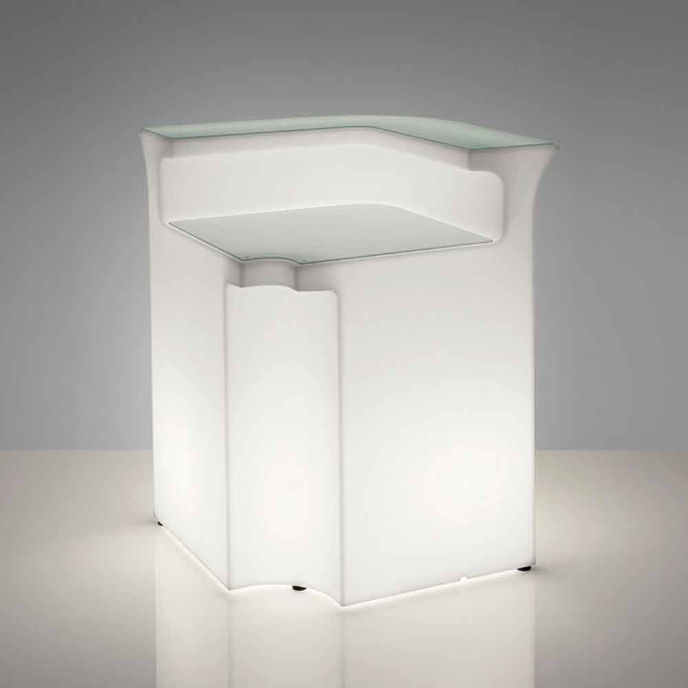 Den er lavet af lys hvid polyethylen og er velegnet til brug som bardisk eller som receptionshjørne selv i små rum, mens den stadig garanterer originalitet takket være lyspunktet, den tilbyder. Det kan bruges både individuelt og i kombination med andet lysende møbeltilbehør fra Break Line og Break Bar linjerne, det vil være i stand til at gøre forskellen som et unikt produkt, der er i stand til at gøre dit miljø til et trendy sted uden for de traditionelle ordninger.