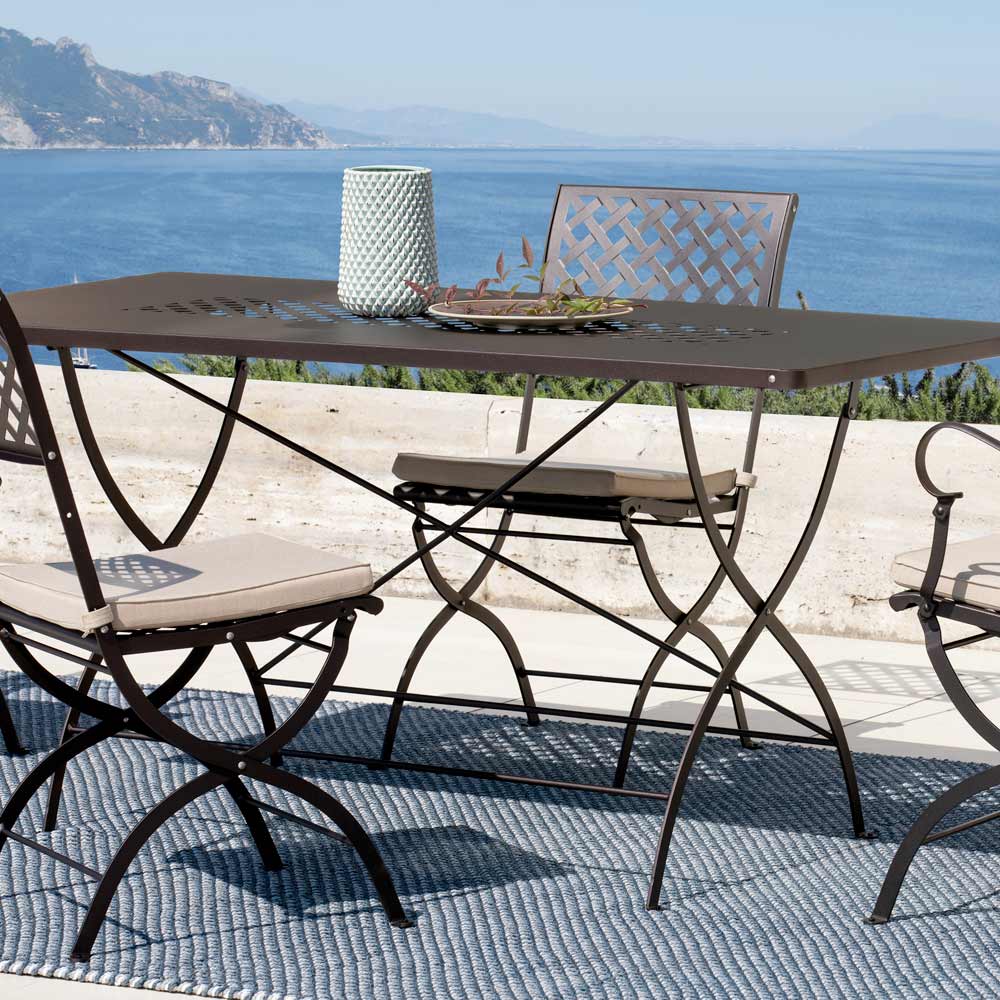 Dette havebord er designet til at være et iøjnefaldende, men ekstremt holdbart møbel takket være materialernes kvalitet. Produktet er fremstillet 100% i Italien . Strukturen er lavet af stål og er forstærket af en galvaniseringsproces for at gøre produktet modstandsdygtigt over for ætsende og atmosfæriske stoffer . Dens foldbare struktur gør dette bord til et perfekt møbel til hyggelige stunder og er fremragende til at optimere pladsen senere.