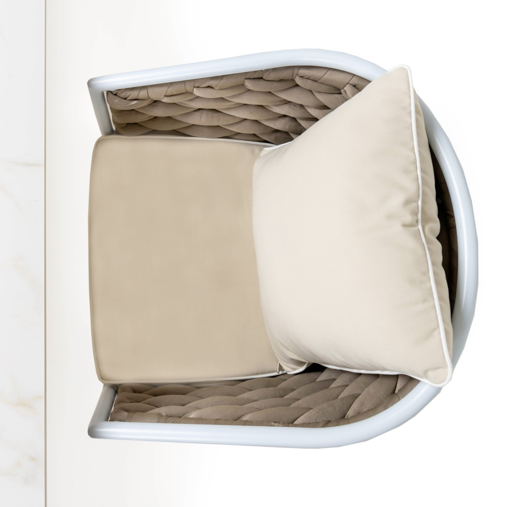 Produkterne i denne kollektion er håndvævede og bruger kun naturlige fibre og materialer, som på grund af deres iboende egenskaber kan udvise uregelmæssigheder, ufuldkommenheder og farveforskelle (forhold, der kan forekomme selv nogen tid efter købet). For at sikre en længere levetid for produktet over tid anbefaler vi, at man undgår længerevarende udsættelse for sollys, regn, fugt og høje temperatursvingninger (faktorer, der kan svække fiberen, gøre den udsat for brud og fremme forekomsten af skimmel). Hvis produktet udsættes for særlig høj luftfugtighed, anbefaler vi, at det tørrer hurtigt og fuldstændigt, og at man altid undgår direkte sollys.