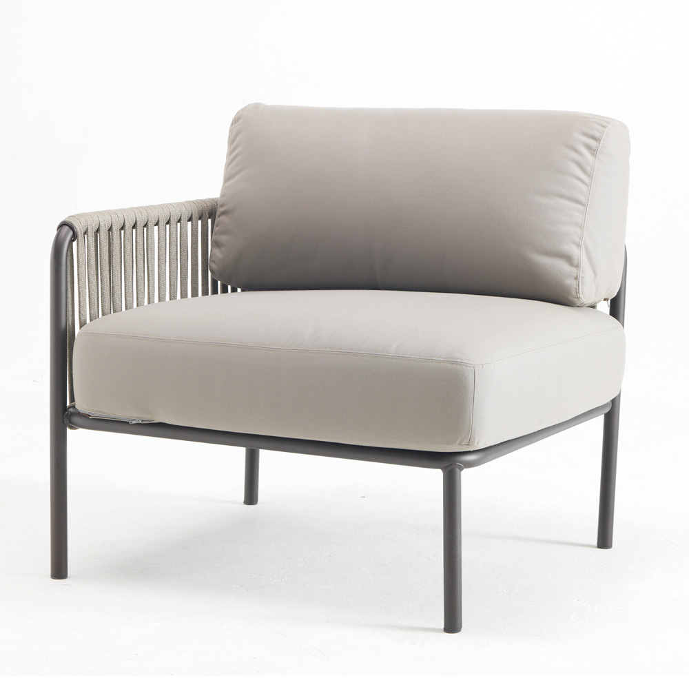 NB : Lænestolen, rebet og hynderne fås i et bredt udvalg af farver. Det aftagelige armlæn kan placeres til højre eller venstre.