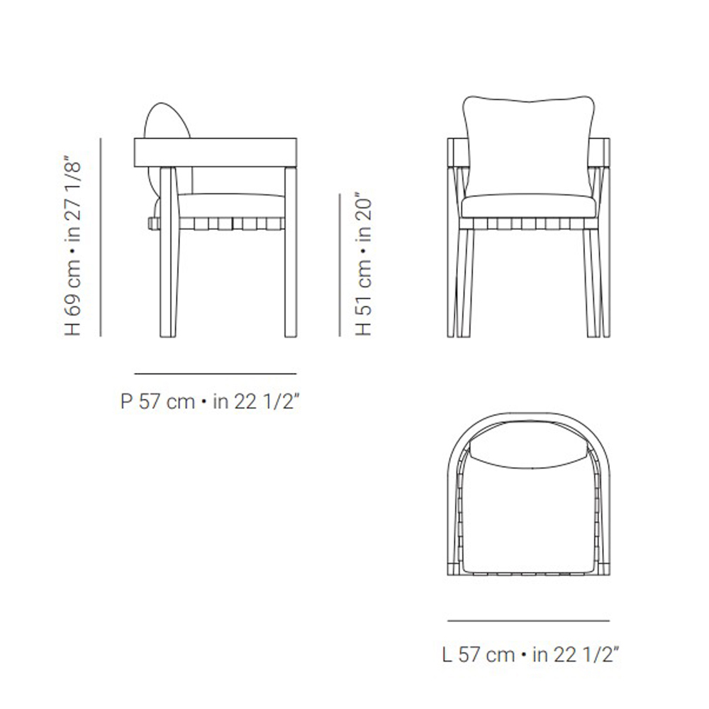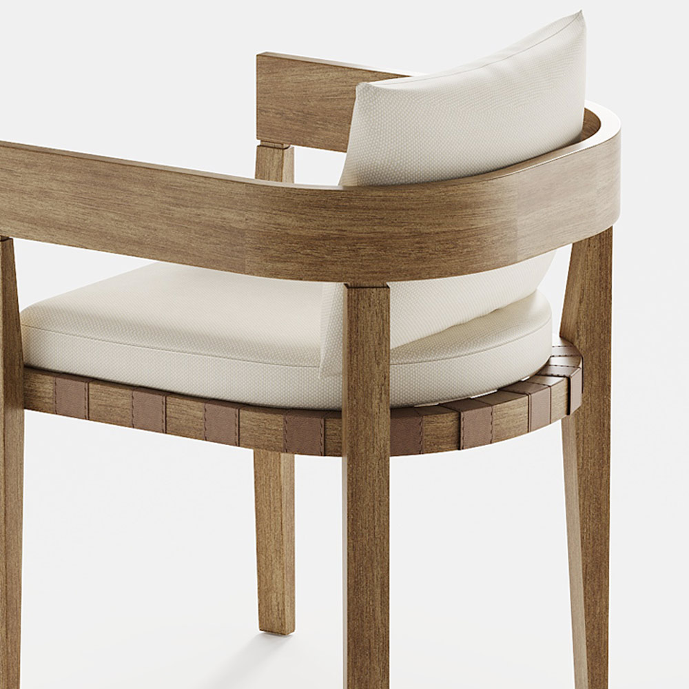 Udendørs lænestol i teaktræ med sæde og ryg i polstret hynde Made in Italy