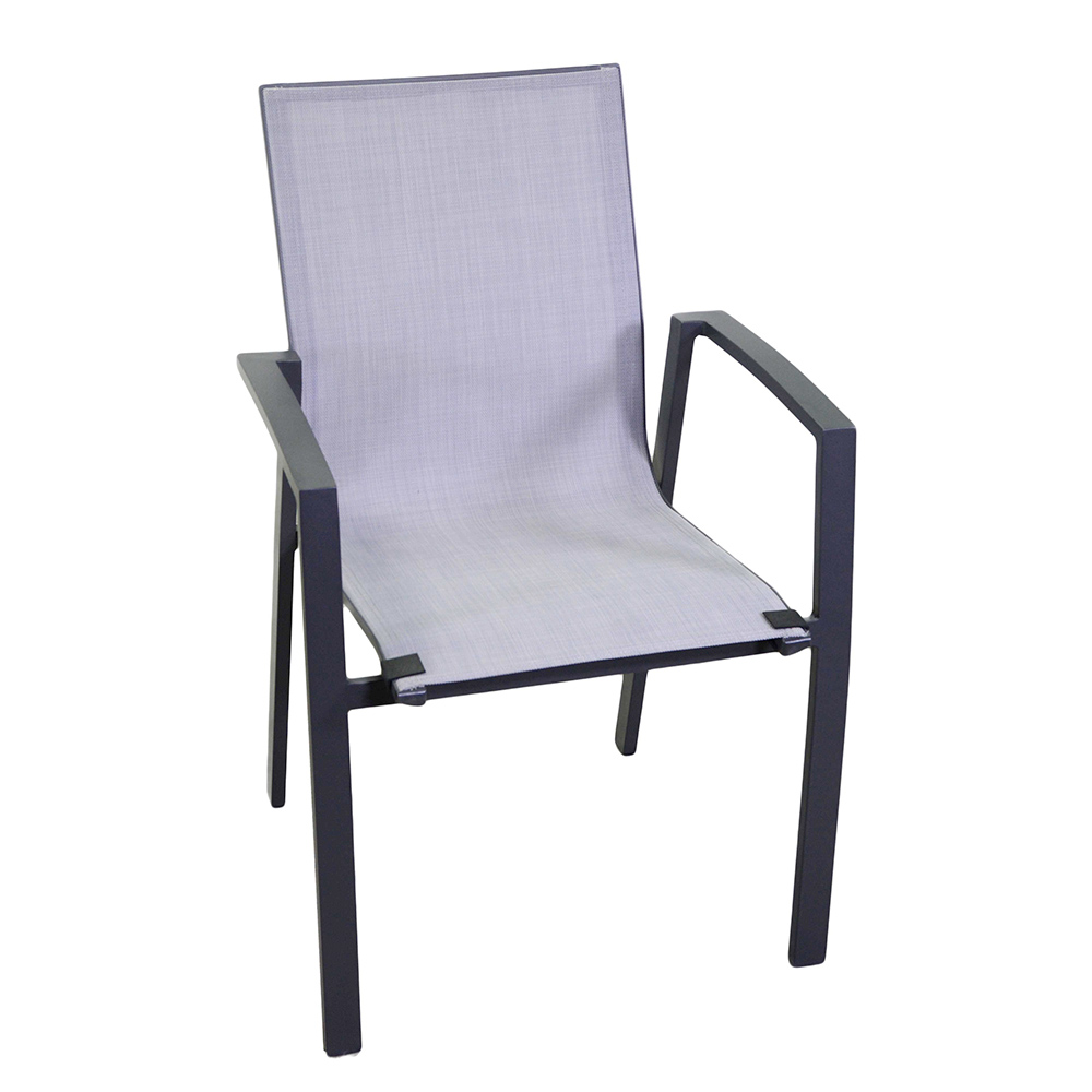 Vores aluminiumslænestol er den perfekte sammensmeltning af moderne elegance og praktisk komfort. Stolen er designet med et pulverlakeret aluminiumsstel og er overordentlig holdbar og vejrbestandig, hvilket gør den ideel til udendørs brug. Stoffet textilene tilføjer ikke kun et strejf af klasse, men er også let at rengøre og holder stolen kølig selv i solen .