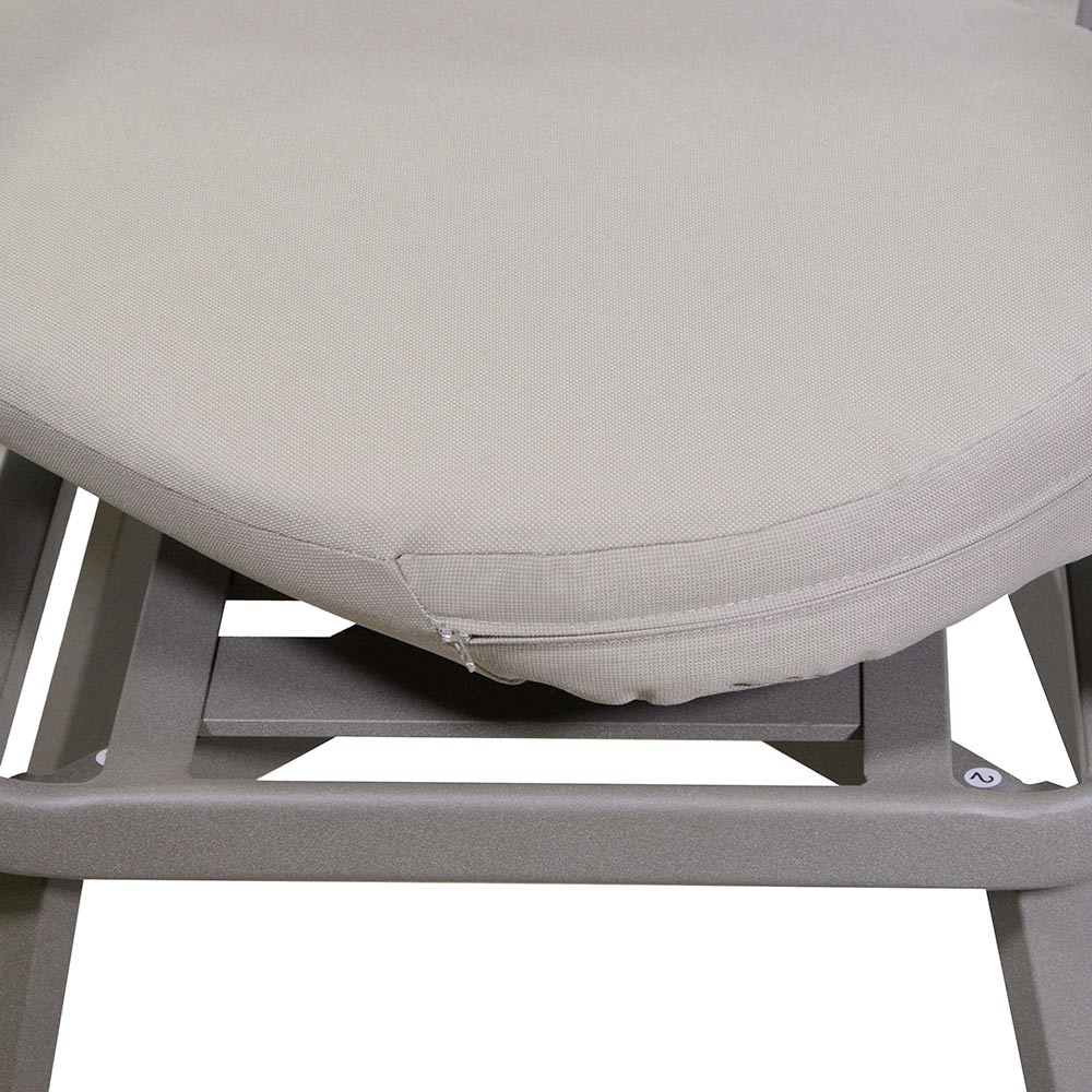 Det robuste aluminiumsstel sikrer holdbarhed og vejrbestandighed, mens den neutrale farve og elegante form integreres perfekt med enhver udendørs indretning. Ideel til dem, der søger kompromisløs stil og varig komfort.