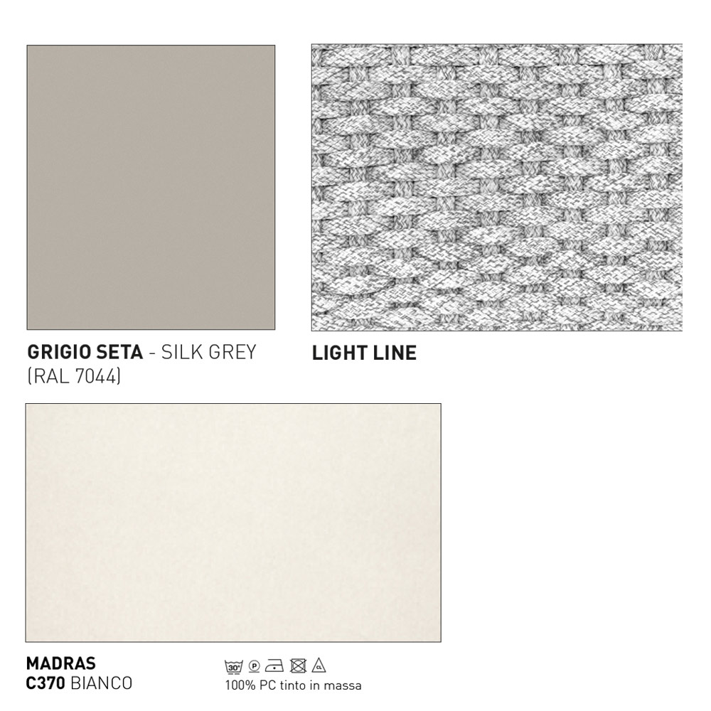 - silkegrå ben, let linjevæv og hvid madras sædehynde;
