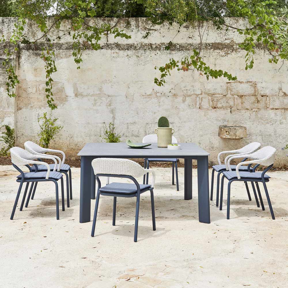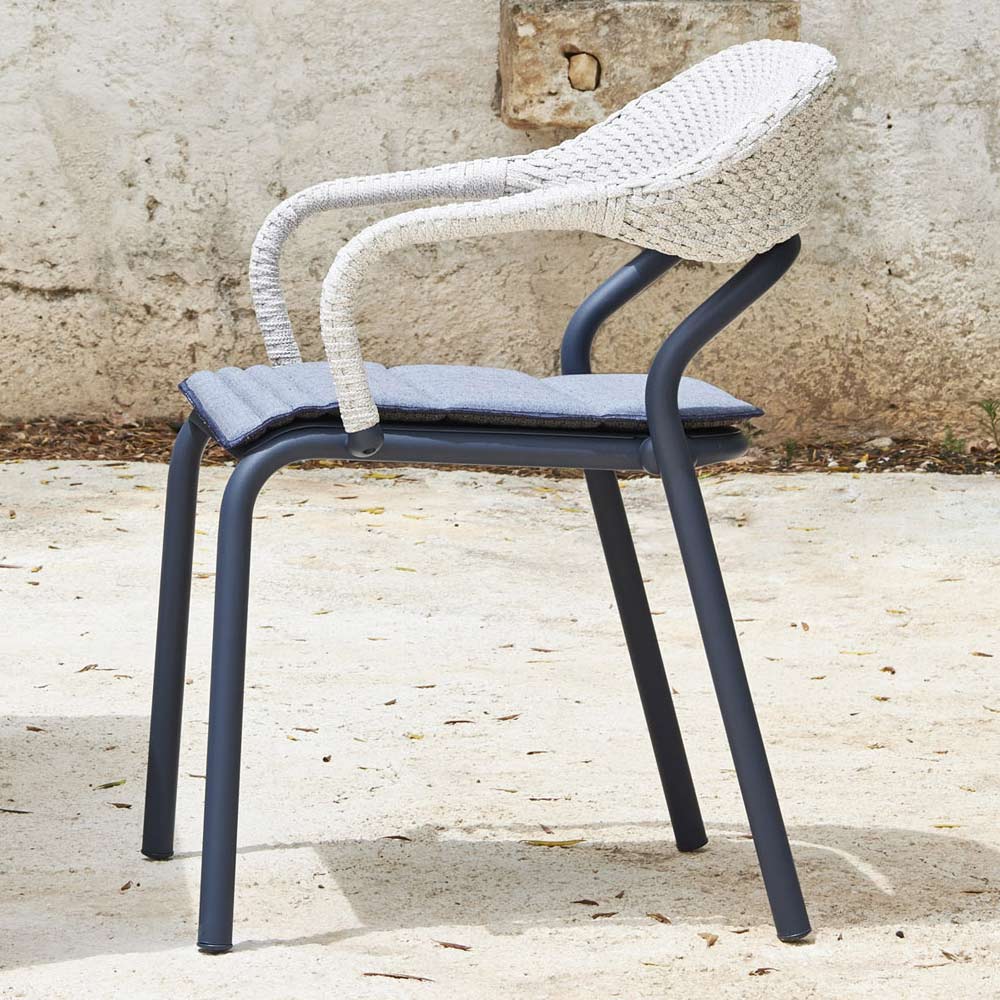 Stabelbar havelænestol i malet aluminium med sædehynde Made in Italy.