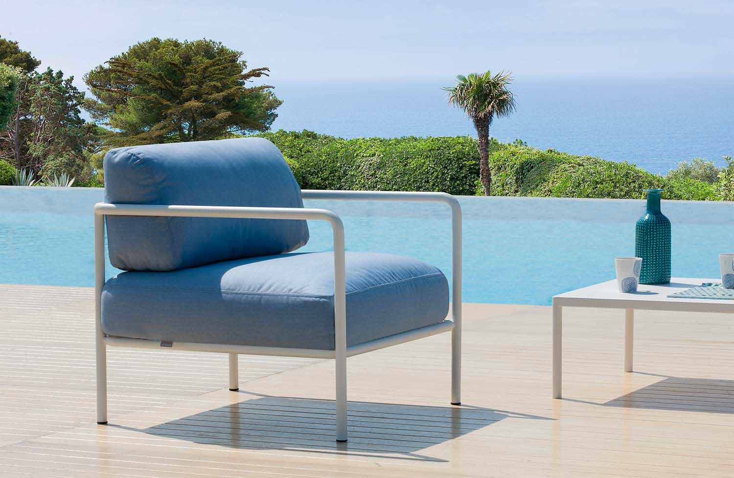 pulverlakeret galvaniseret jern malet med termohærdende pulver, mens sæde- og ryghynden er lavet af 100% farvet akrylstof. Disse to materialer, der bruges sammen, giver produktet soliditet uden at forsømme det visuelle og dekorative aspekt. Ideel til at fuldende møblering af udendørsmiljøer, der kræver elegance og personlighed, takket være de minimalistiske linjer, der gør det til et objekt med et unikt design.