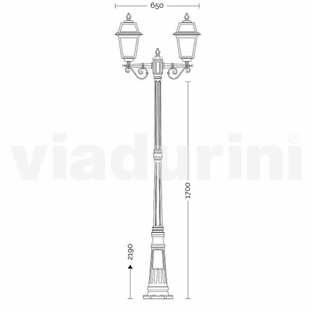 Kristel er en to-lys udendørs lygtepæl håndlavet i Italien med materiale af høj kvalitet: trykstøbt aluminiumsstruktur og glasdiffusor tilgængelig: gennemsigtig eller sandblæst.
