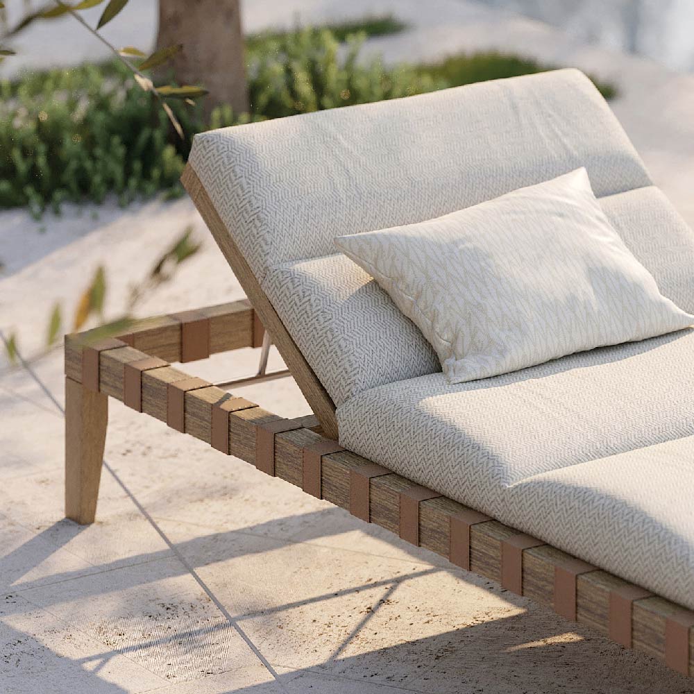 forvitret teaktræ. Liggestolen er udsmykket i strukturen med