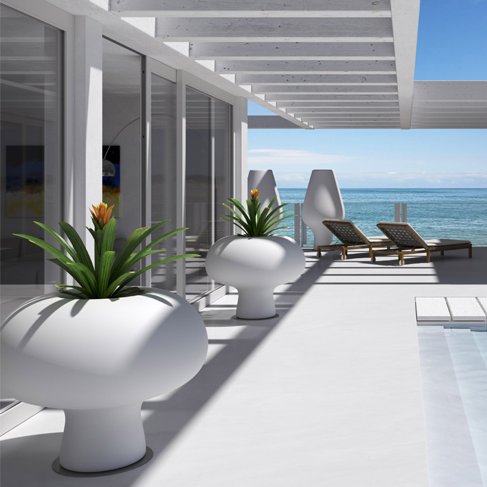 Lysende udendørs vase i uigennemsigtig polyethylen med LED Made in Italy.