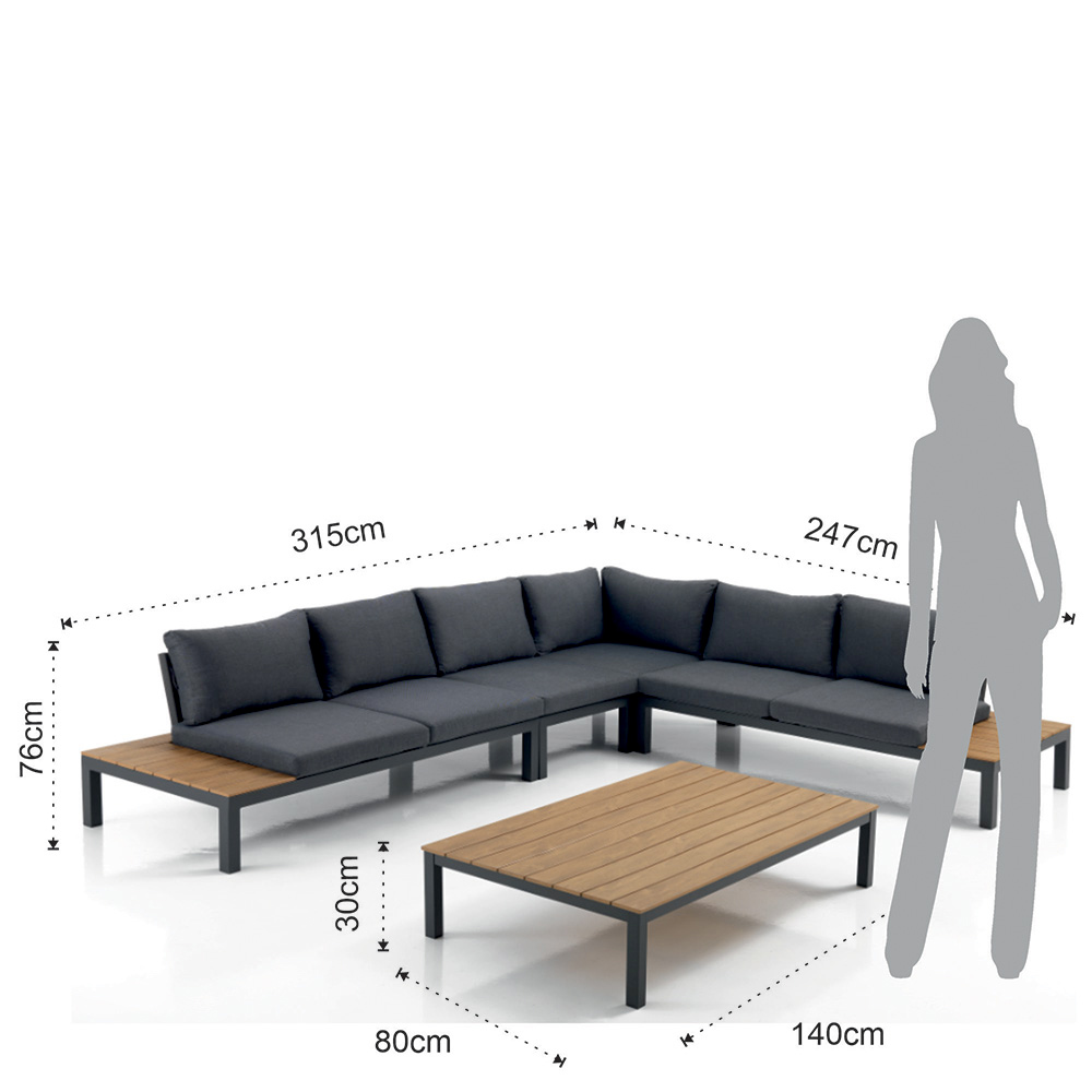| Foranstaltninger | sofa: 315x247x76 cm / sofabord: 80x140x30 cm |