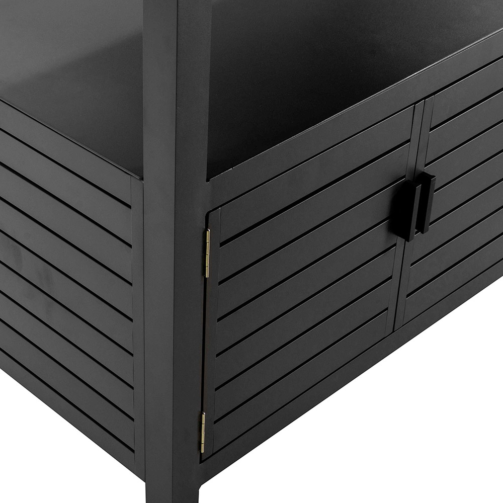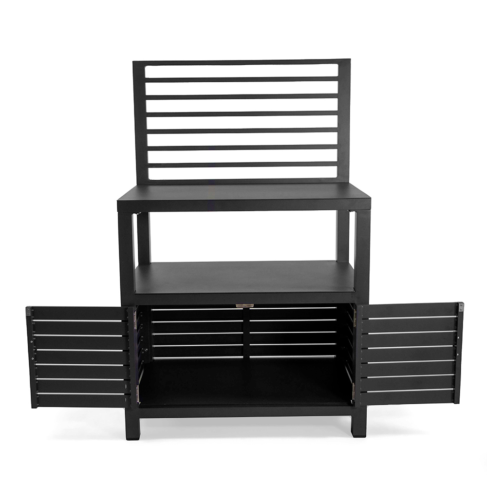 Den robuste ramme i aluminium sikrer vejrbestandighed og holdbarhed, mens det lamelformede design tilføjer et strejf af raffinement. Denne skænk er ikke kun en praktisk tilføjelse, men også et dekorativt stykke, der vil forbedre elegancen i dit udendørs opholdsrum.