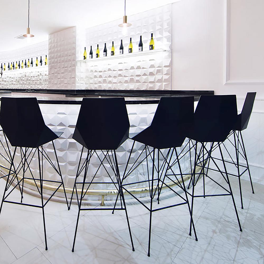 Faz taburetten er en genstand med et moderne design, i polypropylen og rustfrit stål. Det er to slagfaste og lette at vedligeholde materialer.