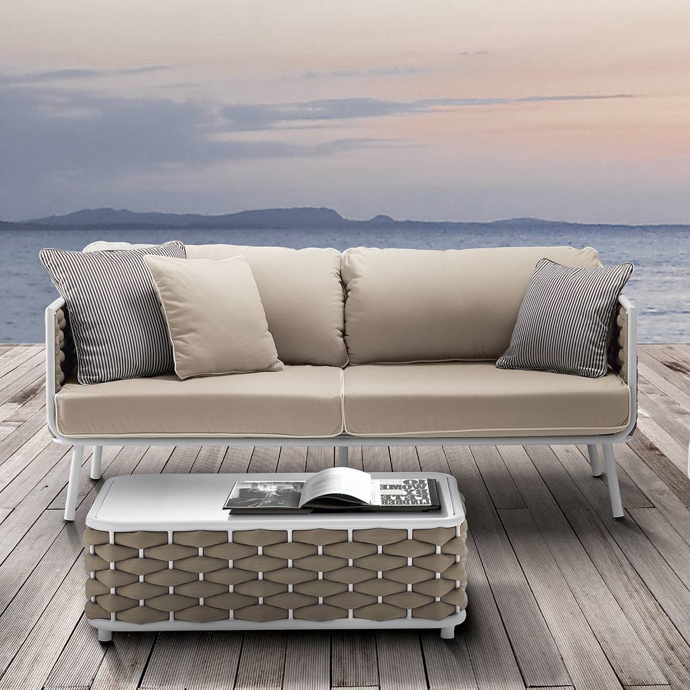 Takket være brugen af særlige materialer af høj kvalitet garanterer denne udendørs sofa udmærket modstandsdygtighed over for vejr, snavs, støv og pletter.